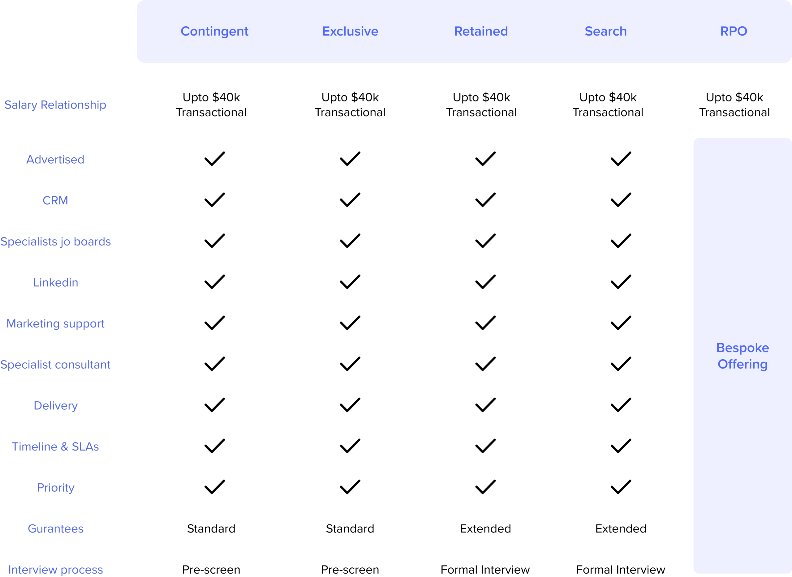 Contingency Recruitment is the option to choose when you have multiple roles open or a vacancy that needs to be filled urgently and where there is a large talent pool to pick from. This is a quick option, whereby we will advertise a role, use internal and external databases to search for a candidate, send over any CVs that we get, introduce the candidate, and guide them through the interview process. With contingency recruitment, clients are under no obligation to interview the candidates that are put forward for their roles, nor do they pay any fees until they have chosen to hire: nothing is paid upfront.